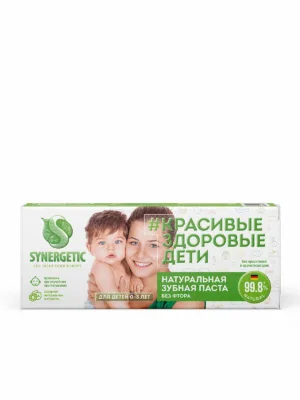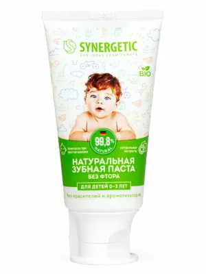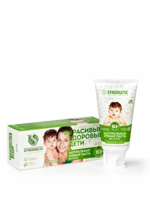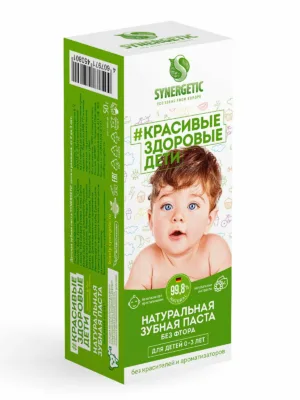 Натуральная зубная паста для детей от 0 до 3 лет SYNERGETIC – безопасная и эффективная паста без фтора, ароматизаторов и красителей.