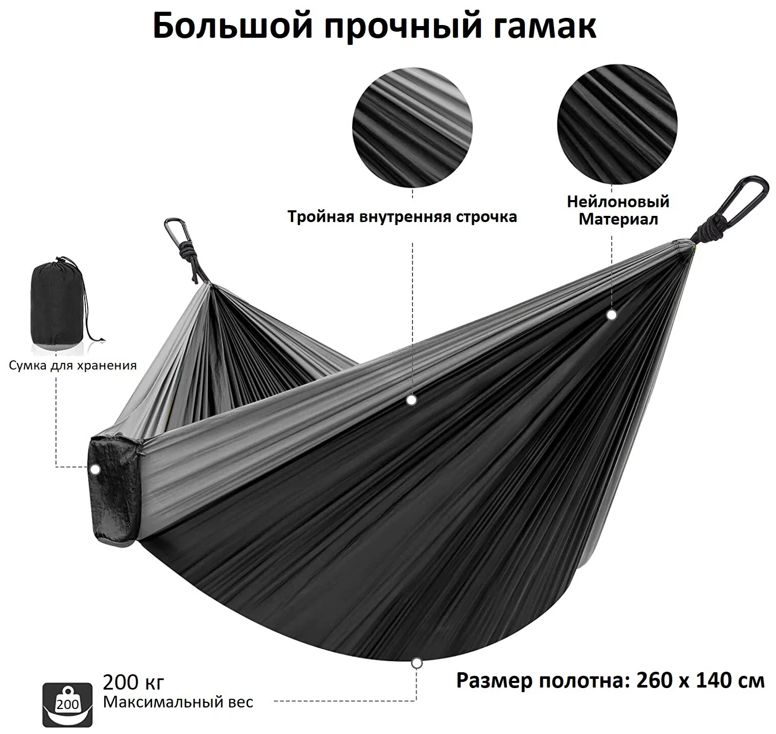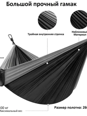 Премиум-качество: наши прочные гамаки рассчитаны на всю жизнь. Они изготовлены из мягкого, но прочного парашютного нейлона с тройной переплетенной строчкой Гамак обладает отличной устойчивостью к износу, разрыву и загрязнению. Легко чистится и быстро сохнет после намокания.