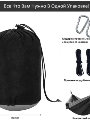 Сверхлегкий гамак для дачи 260х140 см: можно сложить в небольшой прикрепленный мешок, его можно носить с собой и поместить в рюкзак.