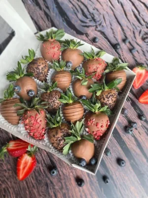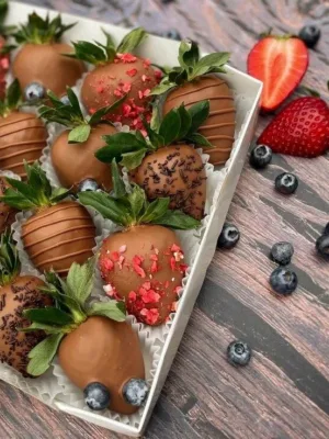 Это вкусный десерт и оригинальный подарок. Он не оставит равнодушными ваших близких и любимых людей. Свежая отборная клубника в бельгийском шоколаде , с добавлением голубики и сублимированной клубники — приятный комплимент-сюрприз, практично заменяет коробку конфет или букет Цветов. Каждый сладкий десерт — выполнен с душой и трепетом, т. к. наши флористы, любят то, что они делают. Гарантия свежести и качества.