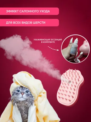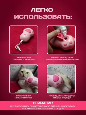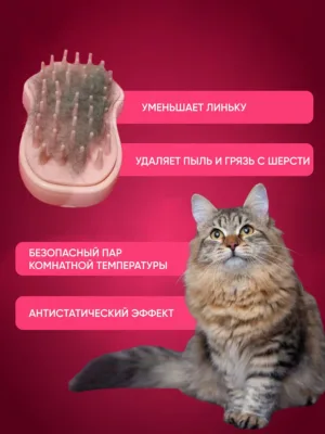 Паровая щетка для животных устраняет вылинявшую шерсть. При использовании расчески пар будет разглаживать шерсть и удалять лишний волосяной покров. Дешеддер удобно держать в руке. Мягкие зубцы щетки очень бережно прочесывают, не вызывают раздражения и царапин, делая уход приятным для вашей кошки и собаки. Эта щетка для мытья животных совместила в себе груминг и уход за вашим домашним питомцем. Чесалка для кошек эффективно решает такие проблемы, как спутывание шерсти, что делает его незаменимым инструментом для владельцев домашних животных. Резиновая пуходерка, гребень создает массажный эффект, а так же дополнительный комфорт во время ухода за шерстью, в отличии от скребка не повреждает кожу вашего питомца, избавляет от колтунов. Данная электрическая расческа 7в1 эффективнее, чем перчатка для вычесывания кошек. Колтунорез прост в уходе и легко очищается водой, щетка массажер подходит для собак крупных, мелких и средних пород, щенкам. Автоматическая чесалка для кота подходит для длинношерстных и короткошерстных кошек и котят. Расческа дешеддер предназначена для вычесывания подшерстка у животных: собак, кошек, грызунов, кроликов, морских свинок и даже лошадей. Вычесыватель может использоваться для уборки и удаления шерсти животных. В набор для груминга входит: массажная щетка, эссенция для ухода за шерстью, usb-провод для зарядки. Обратите внимание: товар сертифицирован и абсолютно безопасен для ваших любимчиков. Приятных покупок в нашем магазине!