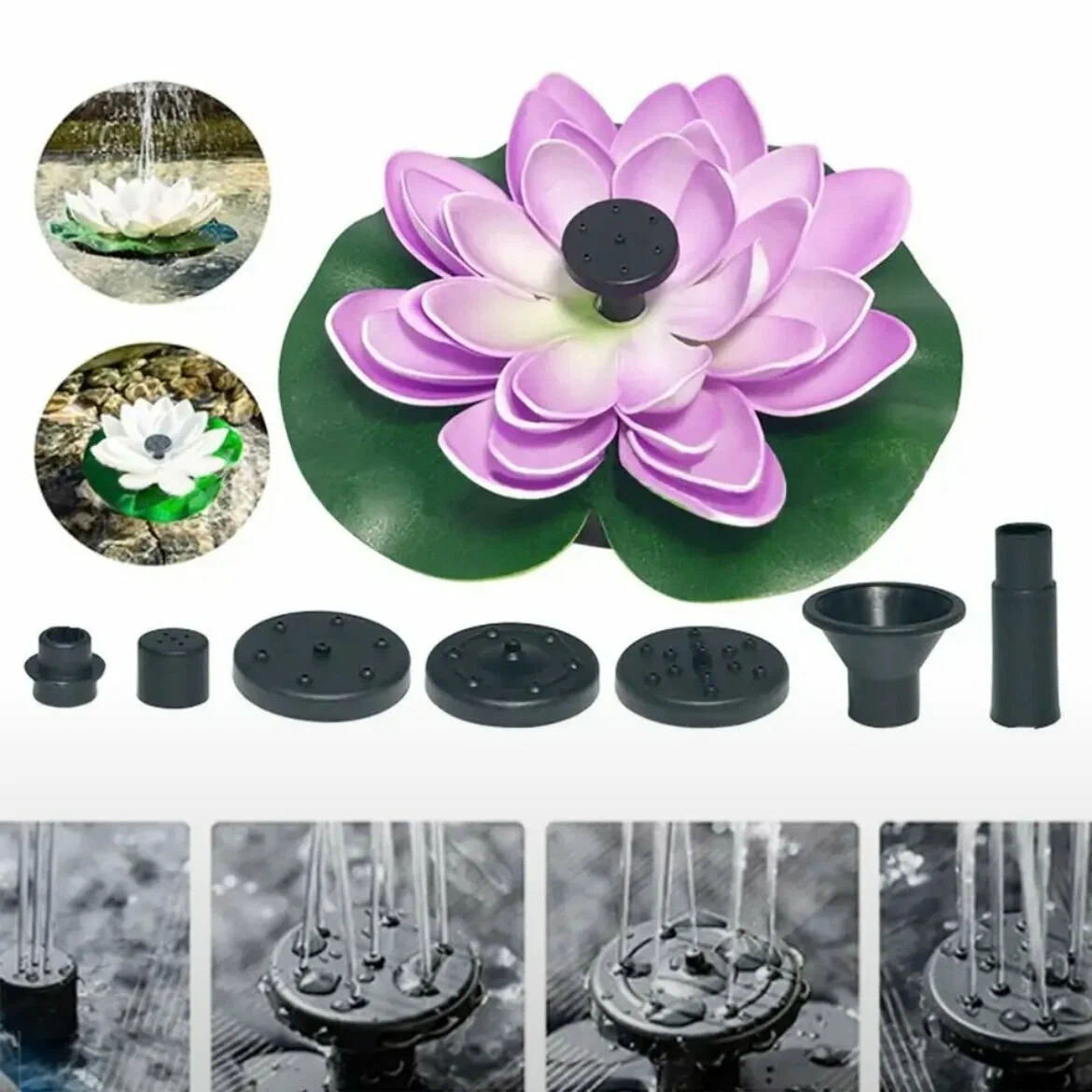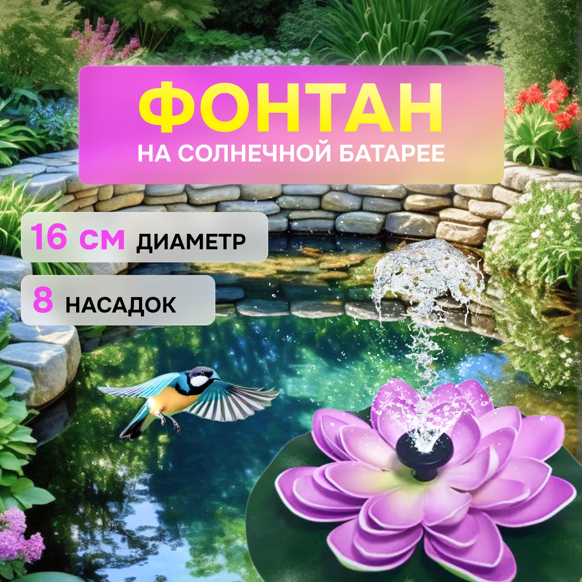 Этот компактный фонтан станет настоящим украшением вашего пруда или бассейна. За счет солнечной батареи он идеально работает на солнце, создавая прекрасный декоративный эффект.