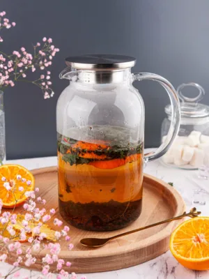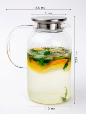 Термостойкий боросиликатный корпус кувшина способен выдерживать температуру от -20С до +150С, что позволяет использовать его для приготовления и подачи горячих напитков, таких как глинтвейн или заваривания чая.
