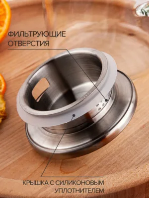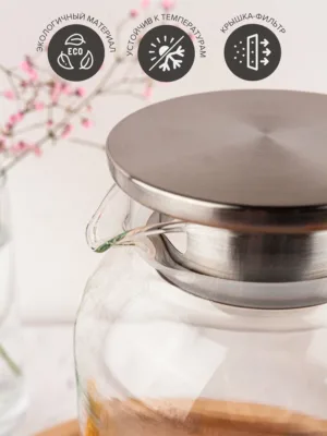 В комплекте с кувшином идет крышка с фильтром, что делает его многофункциональным и практичным в использовании.